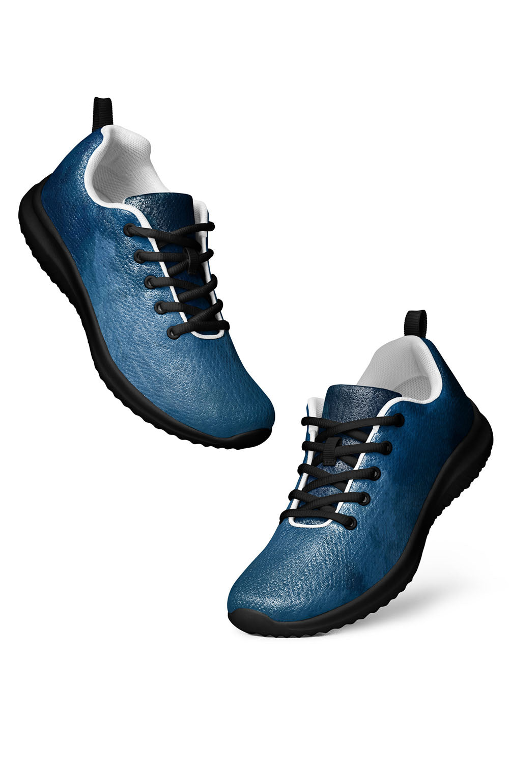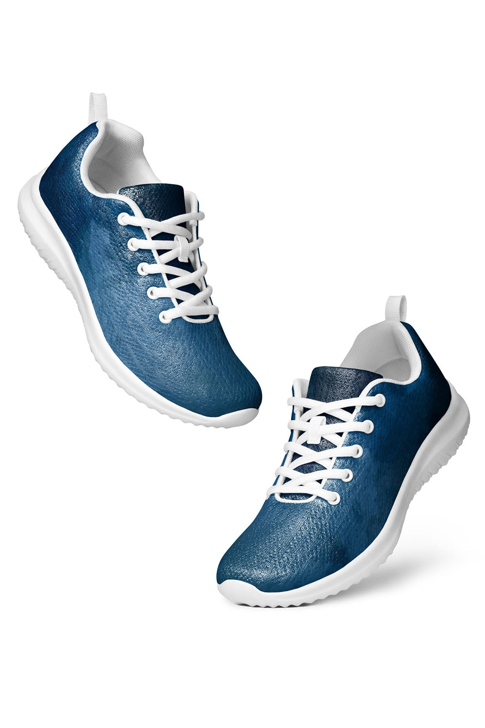Blue Watercolor Men's Athletic Shoes - Imagine dropping blue ink into water and watching it gradually dissolve and spread across the water until it prevails, it is a very satisfying feeling and that's exactly what this artwork represents. To simulate this artwork, we designed illustrations with multiple shades of blue ranging from dark blue to sky blue to create this blue watercolor effect. These blue watercolor men's athletic shoes are soothing and elegant and would be a great addition to your wardrobe.