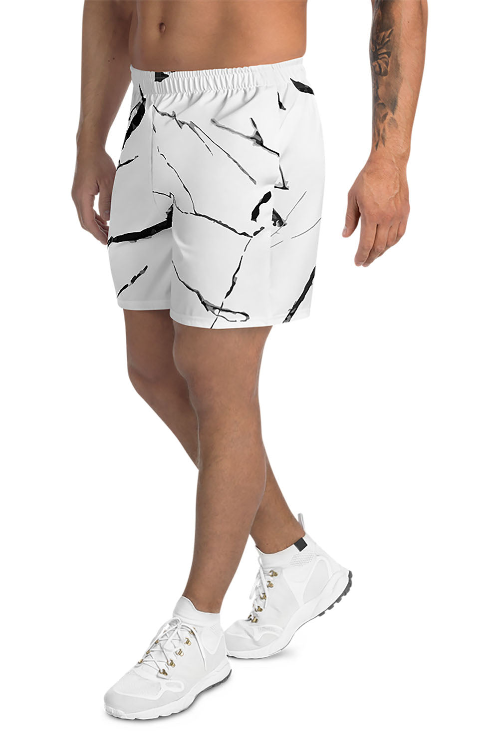 Marble Men's Athletic Shorts - Marble has always been an elegant touch to any home. For this artwork we designed the classic black marble which is combined with the white base color of the shorts creating a beautiful contrast that's relaxing to the eyes. If you like black marble then get these marble men's athletic shorts and add a classic elegant touch to your wardrobe.