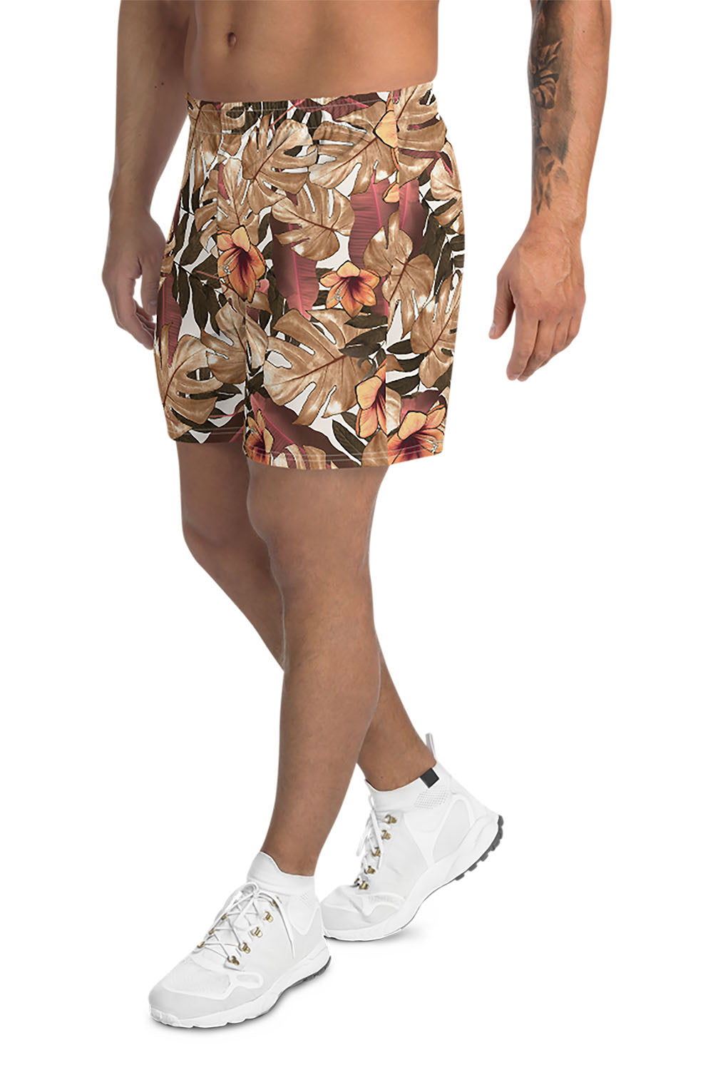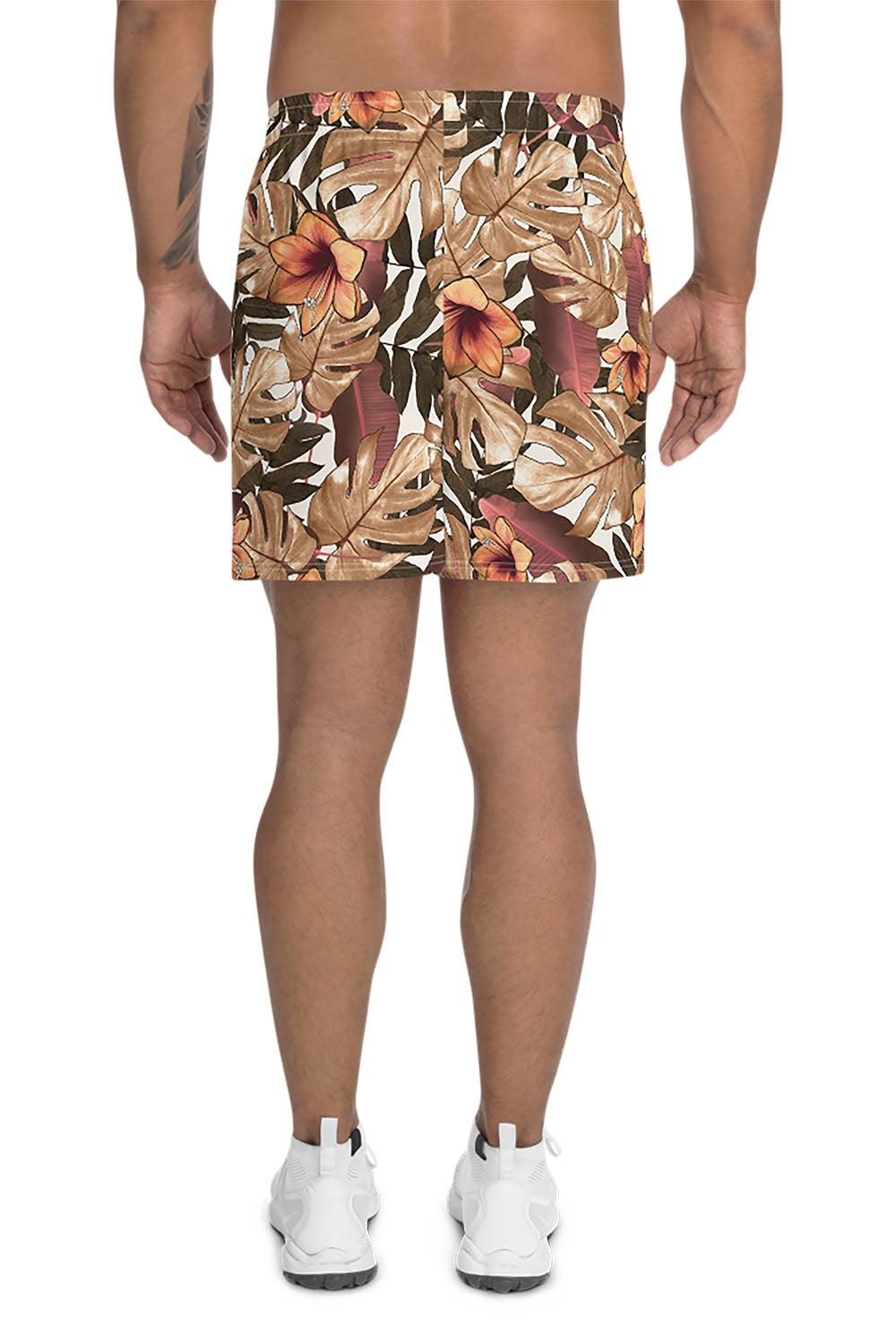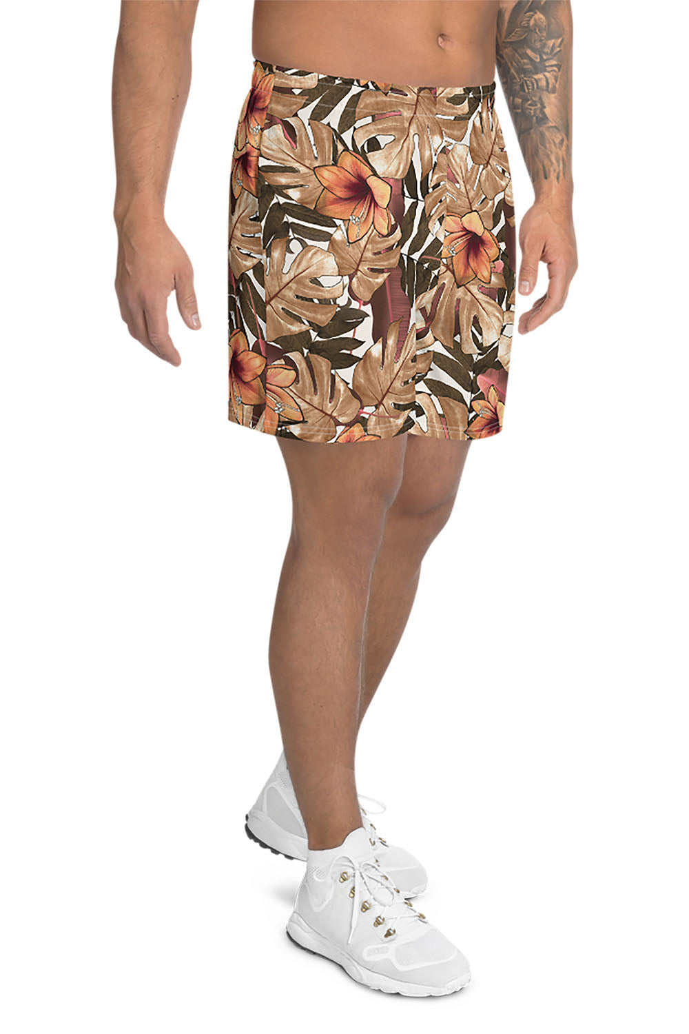 Orange Flower Men's Athletic Shorts - For this artwork, we created an orange flower pattern that spreads across the shorts. If you like floral designs then grab these orange flower men's athletic shorts and enjoy a day at the beach.