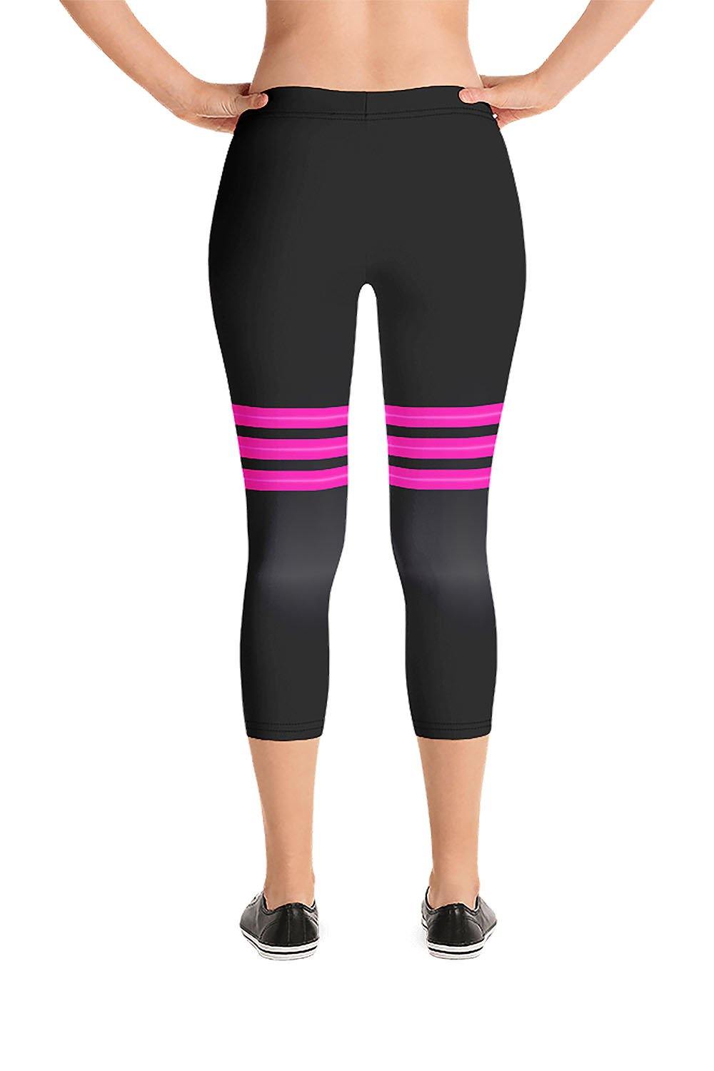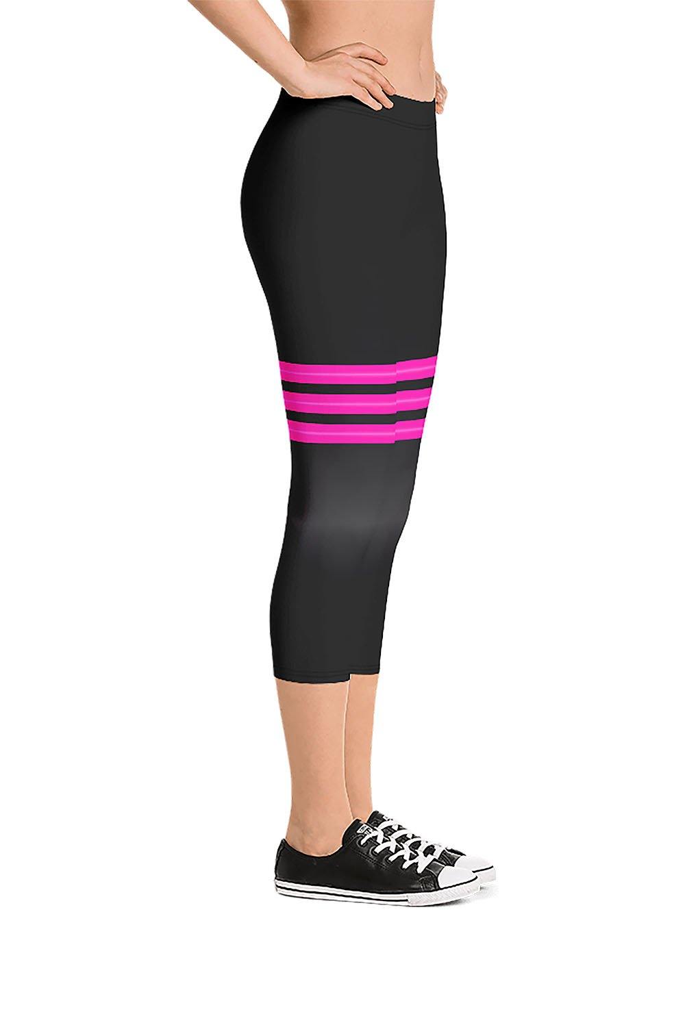 Triple Pink Stripes Black Capri Leggings - Mavreo