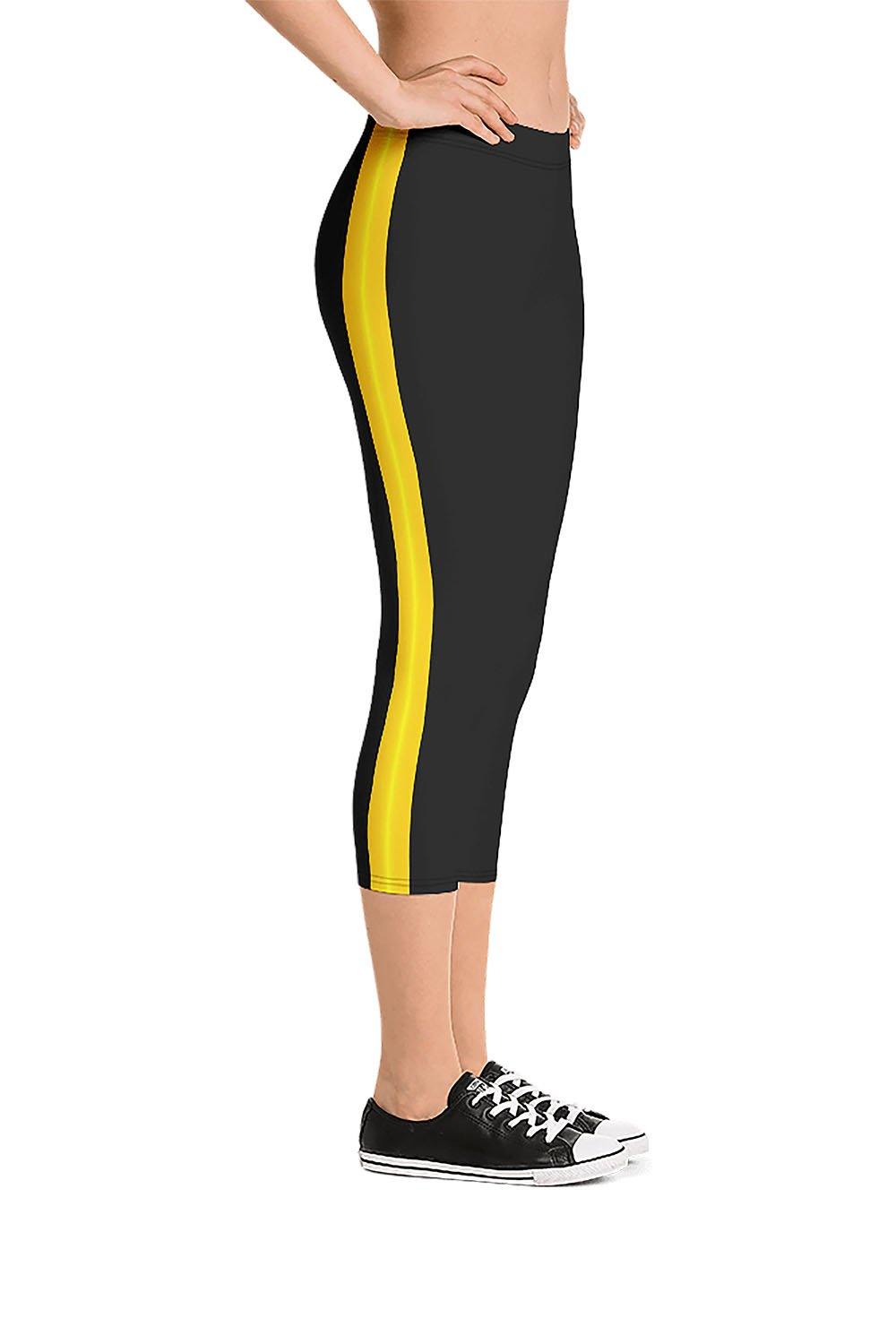 Yellow Stripe Mavreo Black Capri Leggings - Mavreo