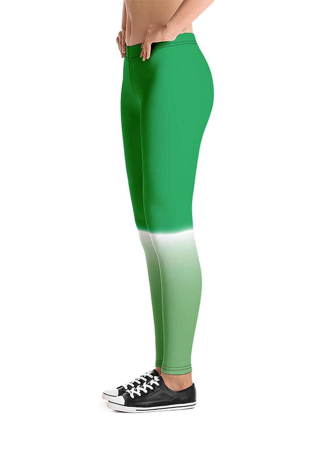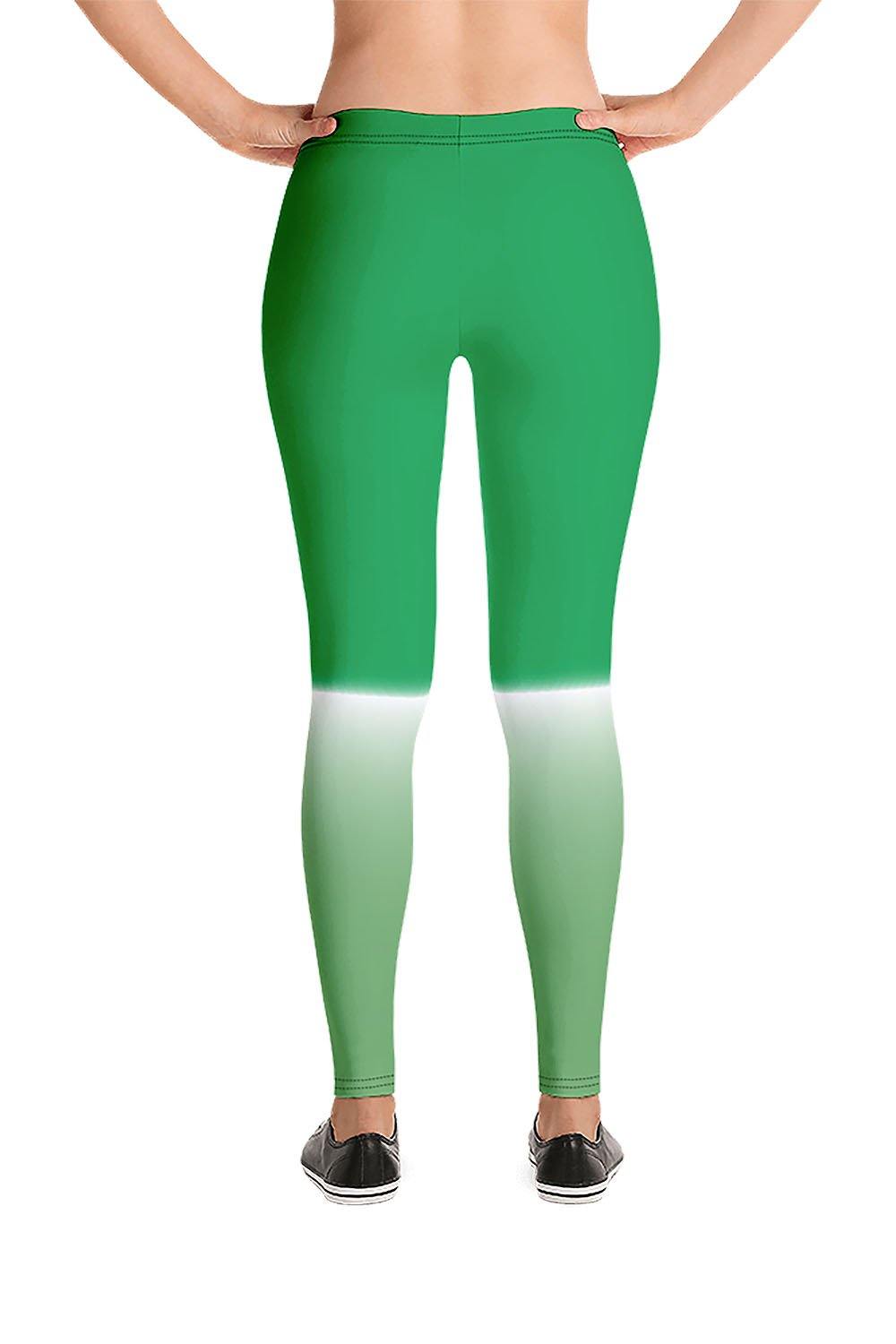 Meadow Leggings - For this artwork, we chose a double tone, on the top we created a malachite green tone and a dull green tone at the bottom, then we separated the two by a white streak that spreads across the knees, giving the illusion of gradually filling the entire leggings with the top tone. Picking meadow as the name of the leggings was derived from the simulation that the artwork represents. The explosion of the green color all over the leggings ranging from deep rich green to light green is a perfect demonstration of a meadow. Vibrant, mesmerizing, and breath taking, these meadow leggings are perfect for nature lovers. Get these leggings and add a meadow to your wardrobe.