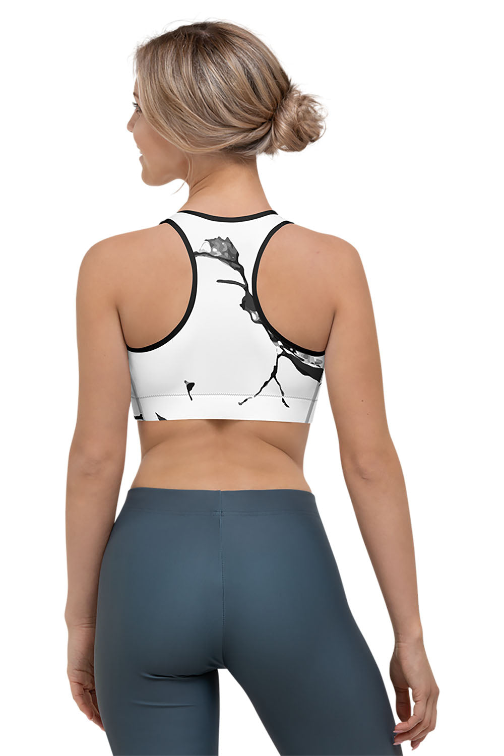 Marble Sports Bra - Marble has always been an elegant touch to any home. For this artwork we designed the classic black marble which is combined with the white base color of the sports bra creating a beautiful contrast that's relaxing to the eyes. If you like black marble then get this marble sports bra and add a classic elegant touch to your wardrobe.