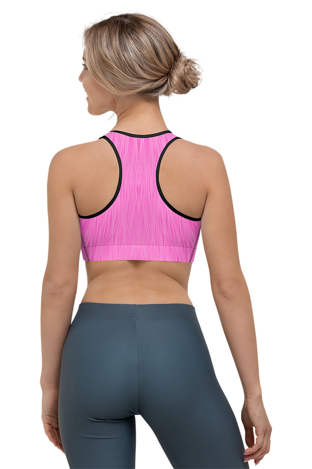 Pink Panther Sports Bra - Picking pink panther as the name of the sports bra was derived from the simulation that the artwork represents. The entire artwork was built from a gradient design that transitions from a neon red tone to a hot pink shade then to a faint pink tinge then using special techniques, we created a fur illustration. Wild, hot, and sexy, this pink panther sports bra is perfect for the girls who like to take that crazy walk on the wild side.