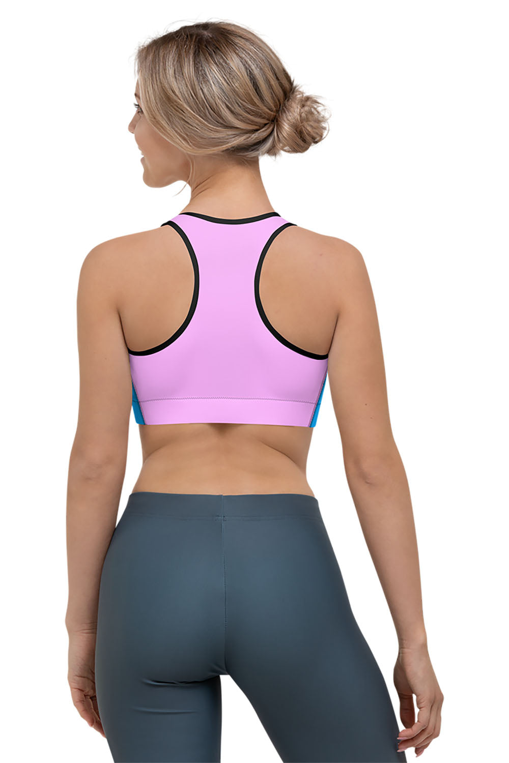 The sports bra base color is white and the design is printed on top of it using the sublimation printing technique. The sports bra inside color will remain white.