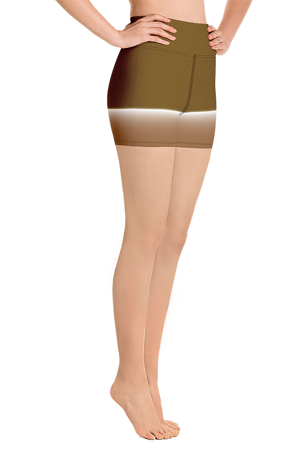 Walnut Yoga Shorts - For this artwork, we chose a double tone, on the top we created a deep brown tone and a regular brown tone at the bottom, then we separated the two by a white streak which gives the illusion of gradually filling the entire shorts with the top tone. Picking walnut as the name of the shorts was derived from the simulation that the artwork represents. Walnuts have dark brown mixed with light shades of brown and a very light tinge of yellow that under a bright light may show as white. Love walnuts? don't go to the nut shop!! Get these walnut yoga shorts and add a walnut to your wardrobe.