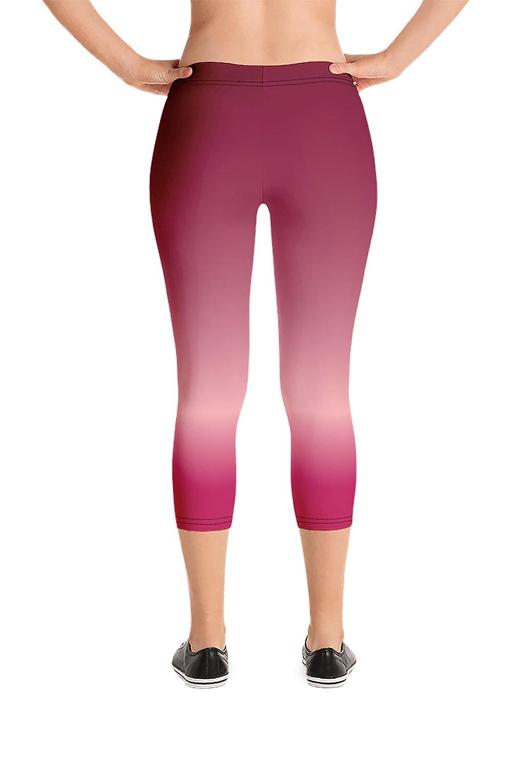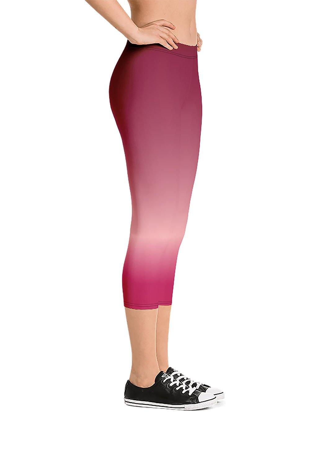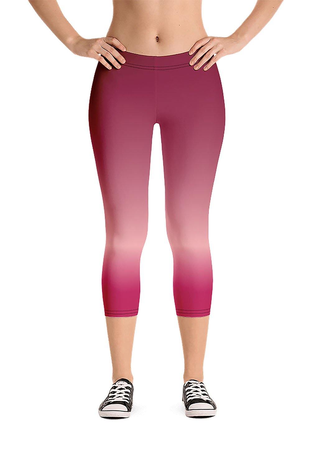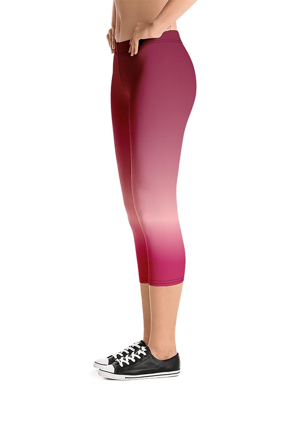 Ruby Capri Leggings - Ruby is the queen of gemstones and the stone of the kings. With its fiery and captivating color, it represents passion, prosperity and protection. Connected to the Base Chakra, therefore it stimulates vitality and energy. The ruby gemstone is a mix of different shades of red, from blood-red, to light red and pink. To simulate this beautiful gemstone, we created a gradient design that transitions from blood/deep-red to a shade of rose-pink then to a lighter shade of red to yet another tint of bright red as a manifestation of this stunning and captivating gem. If ruby is your favorite gemstone, then grab these ruby capri leggings and add a gem to your wardrobe.