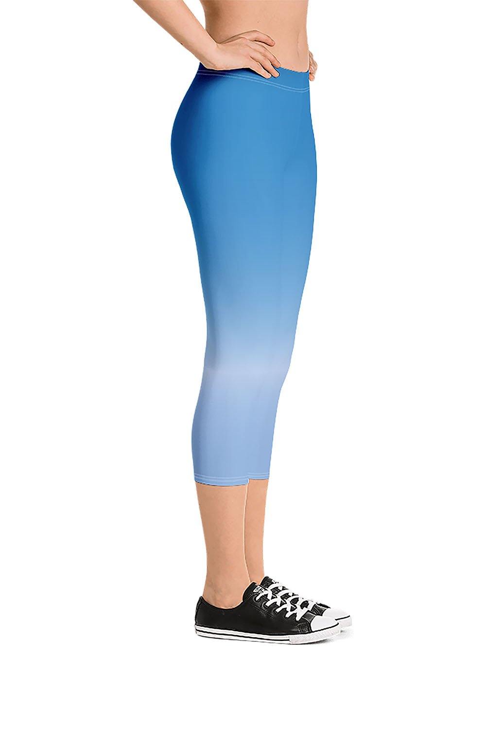 Topaz Capri Leggings - Topaz is a gemstone that has a variety of colors, however, golden-brown to yellow is mostly the color of the naturally occurring topaz which is often confused with the citrine gemstone. Also comes in red, orange, green, pink, blue and mystic (colorless). We chose blue topaz for this design and to simulate this beautiful gemstone, we created a gradient design that transitions from deep blue to a very light blue tinge then to a tint of sky blue as a manifestation of this gorgeous gem. if topaz is your favorite gemstone, then grab these topaz capri leggings and add a gem to your wardrobe.