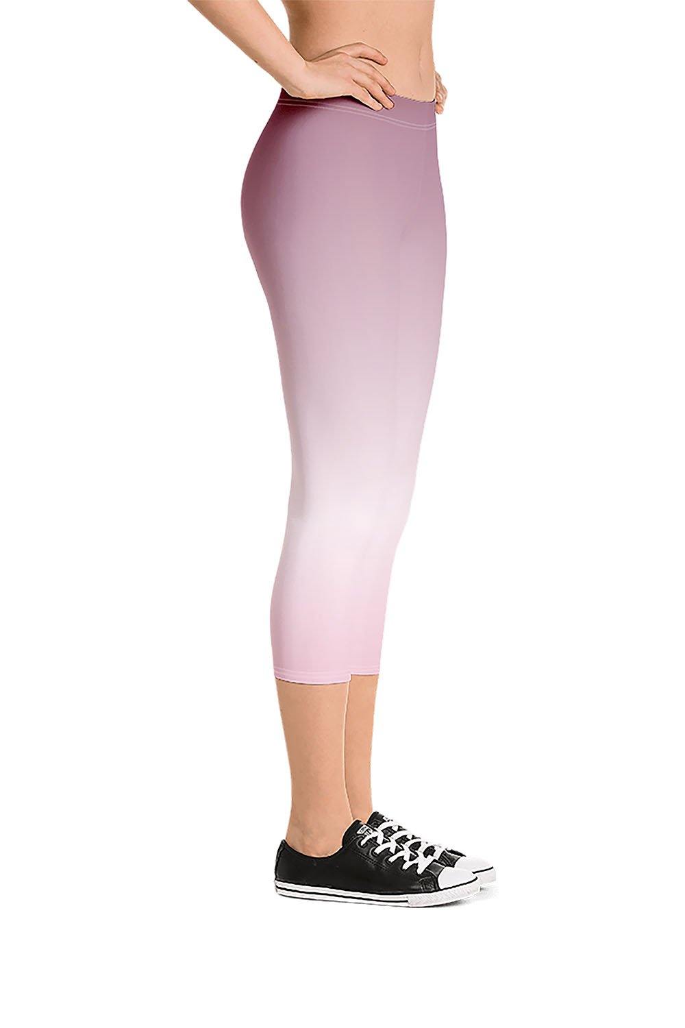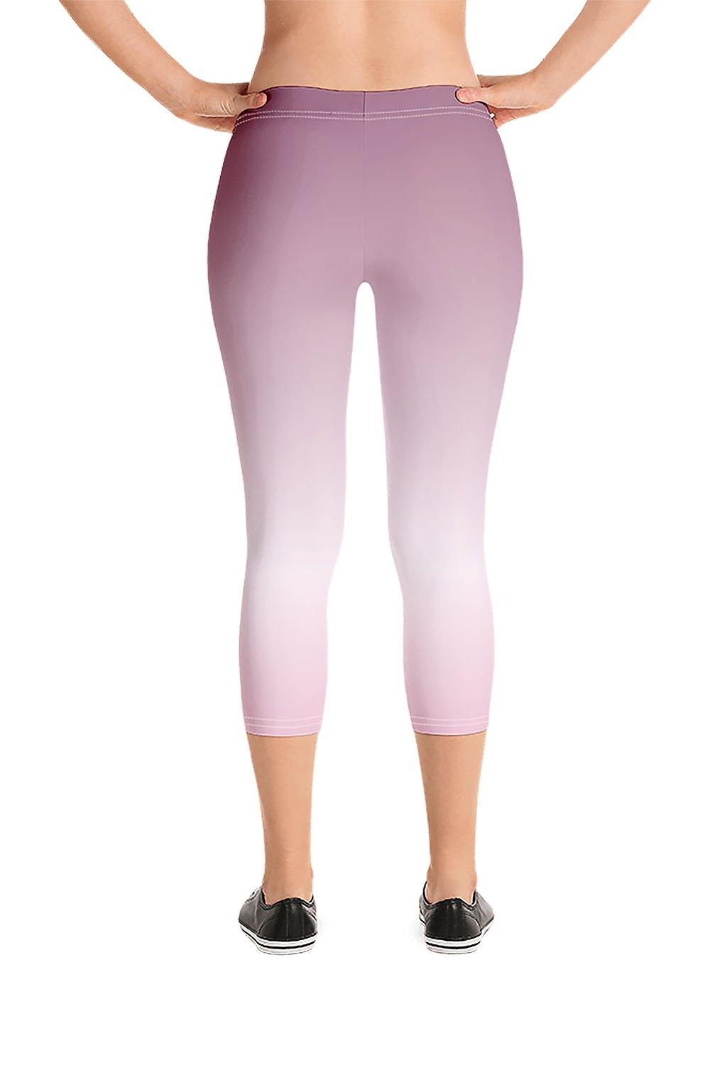 Tourmaline Capri Leggings - Tourmaline gemstones occur in many colors; black, deep brown, yellow, blue, green, red and pink. Pink tourmaline is associated with the Crown Chakra, infusing spirituality and love, encouraging compassion and gentleness, and that's what we chose for this design. To simulate this beautiful gemstone, we created a gradient design that transitions from a muted shade of pink (close to dusty rose) to a very light shell pink tinge (close to white) then to a tint of faint pink which is a bit deeper shade of shell pink as a manifestation of this captivating gem. If tourmaline is your favorite gemstone, then grab these tourmaline capri leggings and add a gem to your wardrobe.