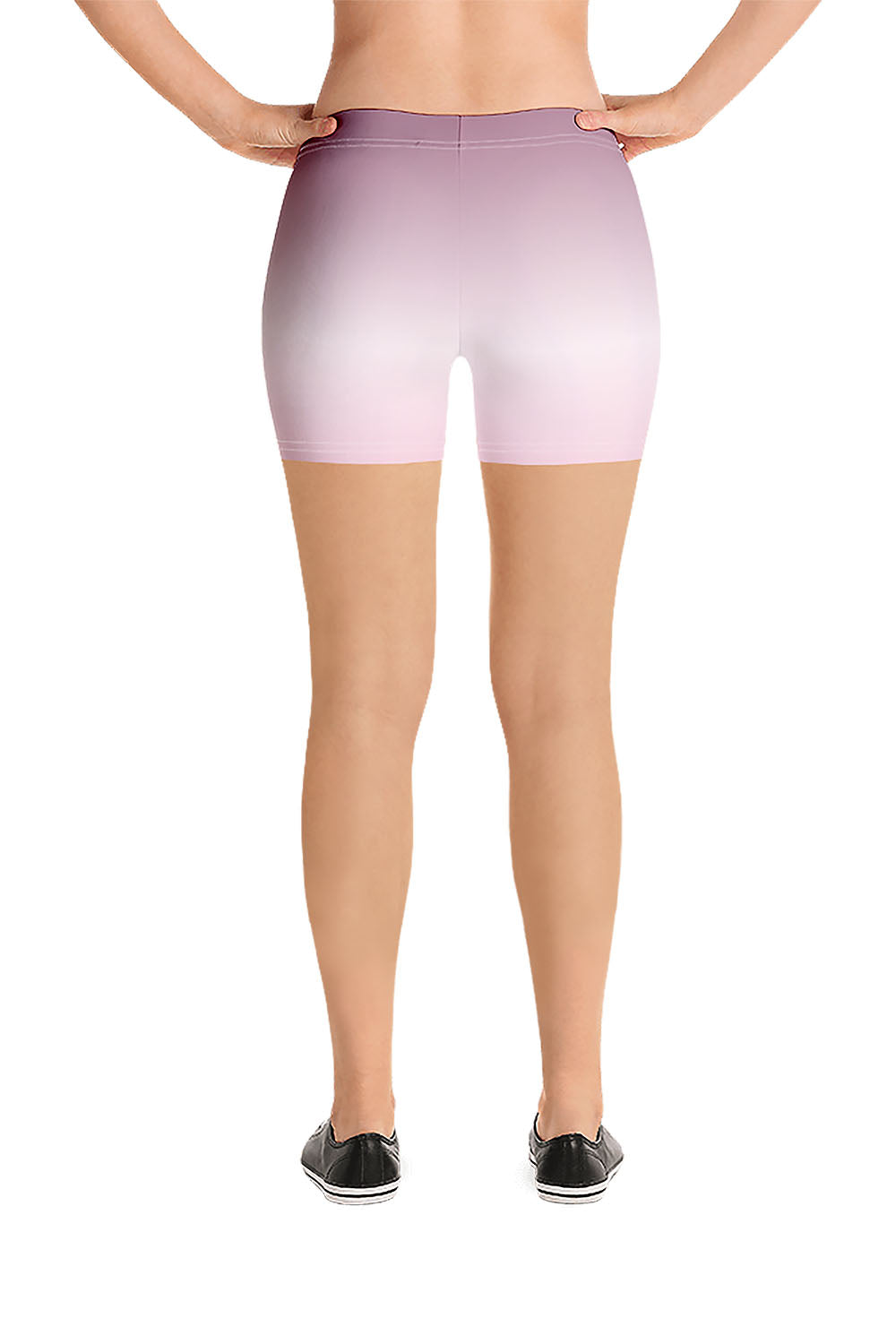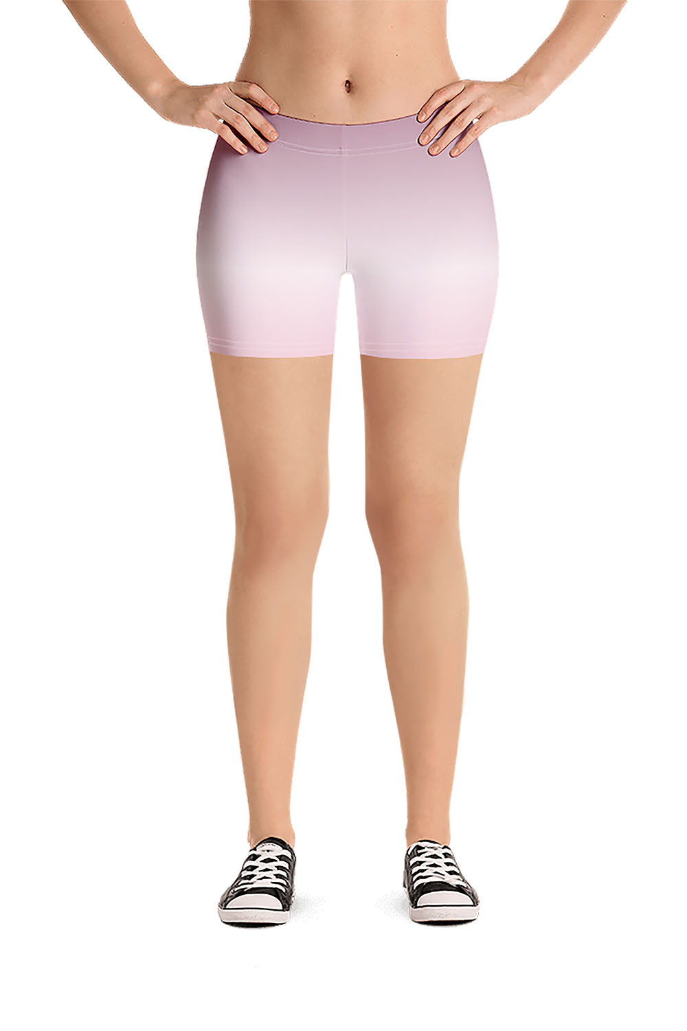 Tourmaline Shorts - Tourmaline gemstones occur in many colors; black, deep brown, yellow, blue, green, red and pink. Pink tourmaline is associated with the Crown Chakra, infusing spirituality and love, encouraging compassion and gentleness, and that's what we chose for this design. To simulate this beautiful gemstone, we created a gradient design that transitions from a muted shade of pink (close to dusty rose) to a very light shell pink tinge (close to white) then to a tint of faint pink which is a bit deeper shade of shell pink as a manifestation of this captivating gem. If tourmaline is your favorite gemstone, then grab these tourmaline shorts and add a gem to your wardrobe.