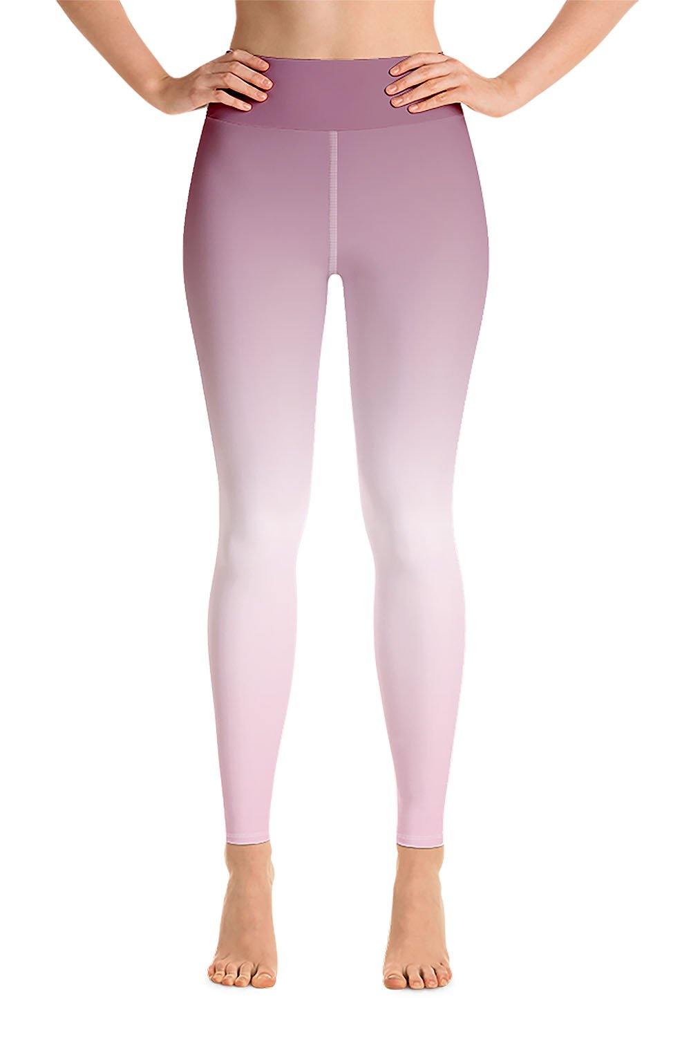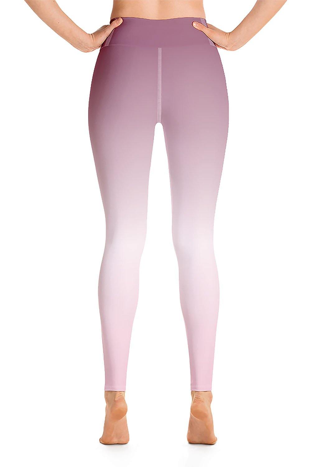 Tourmaline Yoga Leggings - Tourmaline gemstones occur in many colors; black, deep brown, yellow, blue, green, red and pink. Pink tourmaline is associated with the Crown Chakra, infusing spirituality and love, encouraging compassion and gentleness, and that's what we chose for this design. To simulate this beautiful gemstone, we created a gradient design that transitions from a muted shade of pink (close to dusty rose) to a very light shell pink tinge (close to white) then to a tint of faint pink which is a bit deeper shade of shell pink as a manifestation of this captivating gem. If tourmaline is your favorite gemstone, then grab these tourmaline yoga leggings and add a gem to your wardrobe.