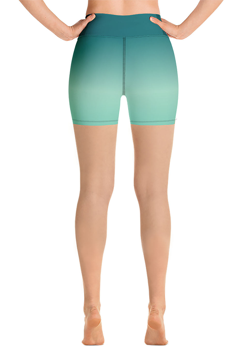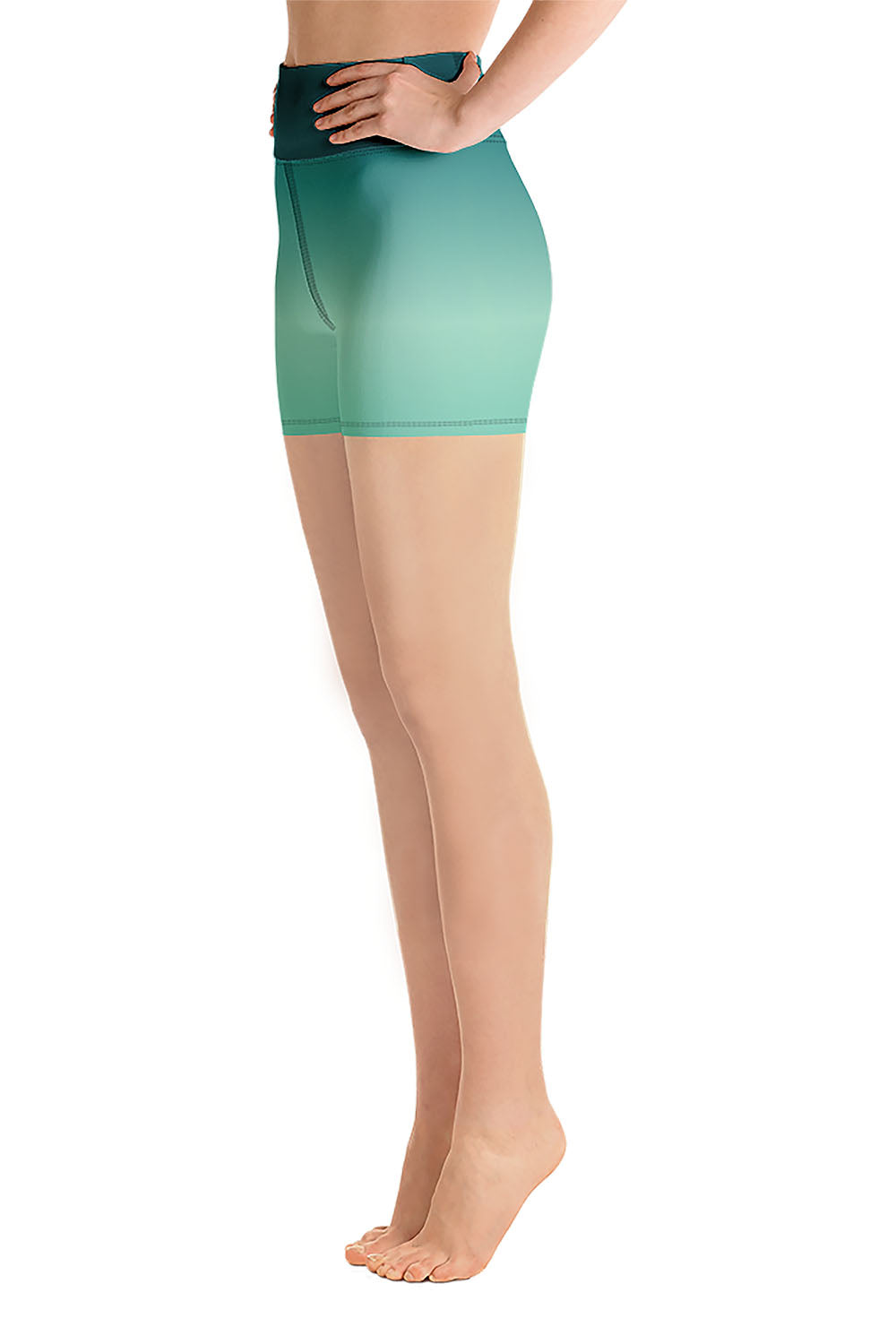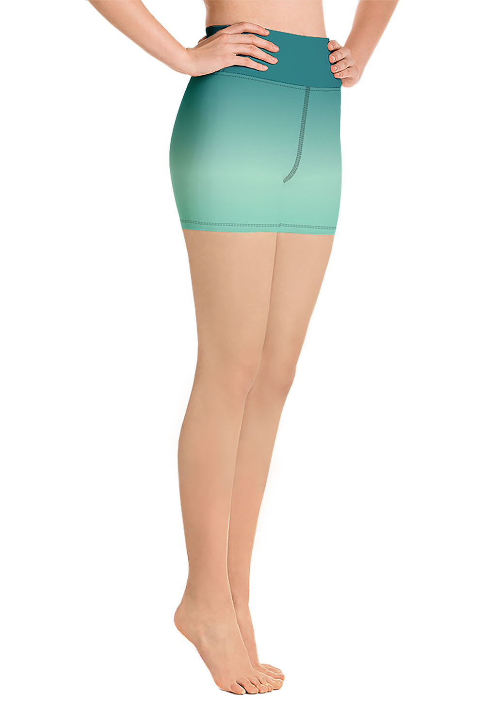 Jade Yoga Shorts - Jade is the ultimate good luck gemstone, it brings abundance and prosperity into your life. All gemstones promote harmony between the body, mind and spirit however, Jade is the go-to gem for spiritual healing due to its powerful connection to the heart Chakra and its varying degrees of green shades. For this design we chose a teal green color which is teal but with more green proportions. To simulate this beautiful gemstone, we created a gradient design that transitions from teal green to a mint green tinge then to a bit darker shade of mint green as a manifestation of this stunning ornamental gem. If jade is your favorite gemstone, then grab these jade yoga shorts and add a gem to your wardrobe.