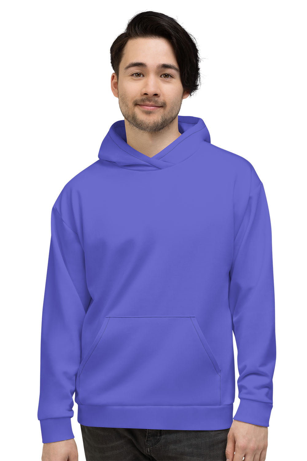 Twilight Blue AOP Unisex Hoodie - During a specific period of twilight, when the sun is at a significant depth below the horizon and when the residual, indirect sunlight takes on a predominantly blue shade is what's called the blue hour, and that's what this color represents, this spectacular and marvelous act of nature that soothes the soul. Get this twilight blue AOP unisex hoodie and take the blue hour home with you.