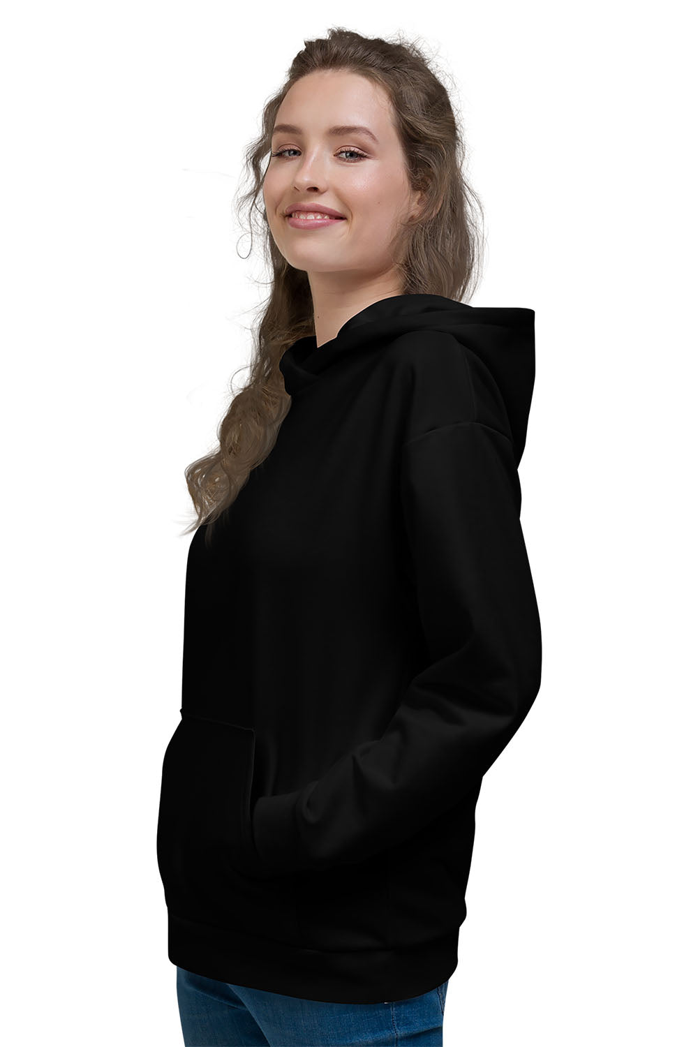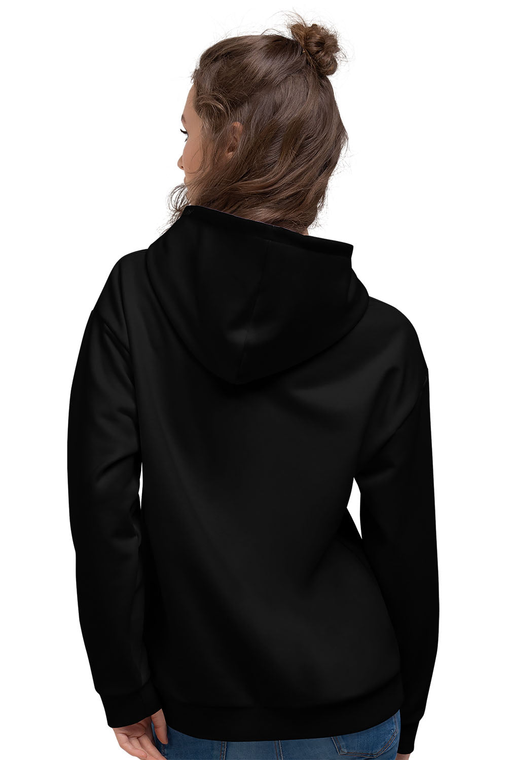 Black AOP Unisex Hoodie - Black has always been the color of elegance and it goes perfectly with all the other colors. With black you don't need to worry about matching your outfit, just put on any bottom with this black AOP unisex hoodie and you will look glamorous.