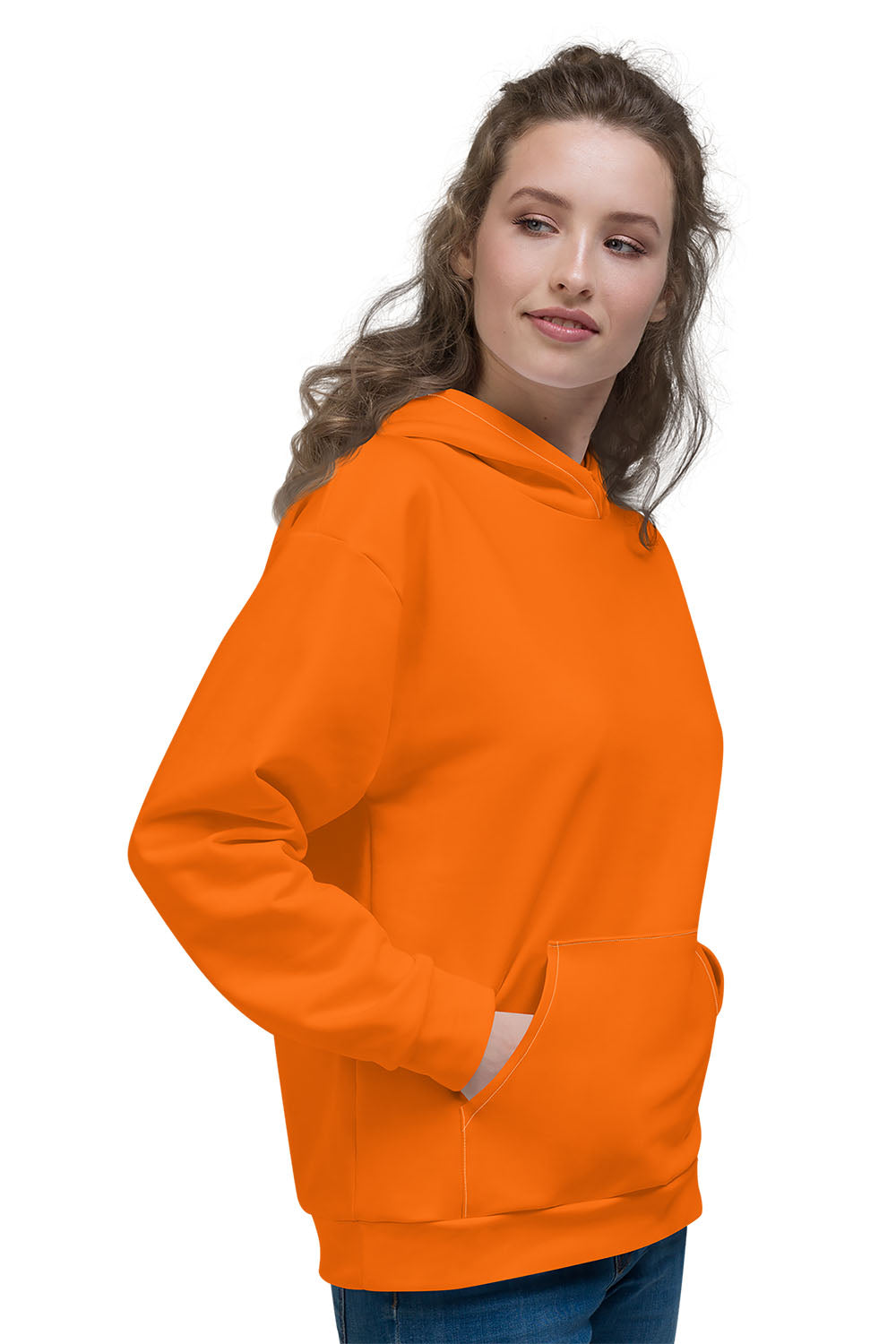 Orange AOP Unisex Hoodie - Orange is a mix of red and yellow - It has many variations depending on the proportions of its two primary colors. It's a catchy, creative, fresh, and youthful color and has the optimism of yellow and the warmth of red. It evokes energy and activity and encourages socialization.