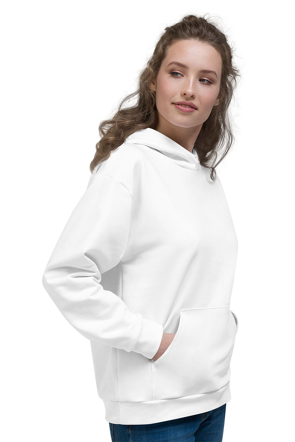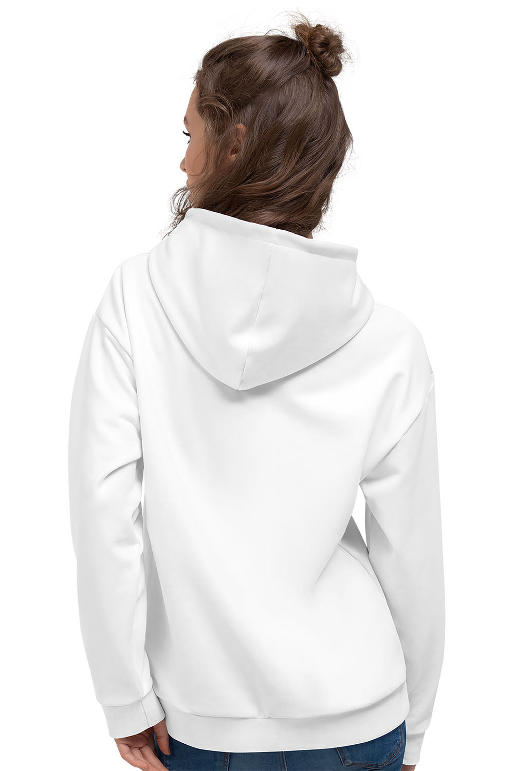 White AOP Unisex Hoodie White is an achromatic color, meaning it is a color without a hue. It has been a staple of art, history, and culture for many eras. In fact, it is recorded as the first color ever used in art, with Paleolithic artists using white calcite and chalk to draw. Throughout much of history, white has been elected as a symbol of goodness, spirituality, purity, and sacredness. Ancient Egyptian gods, Greek gods, Roman goddesses were all depicted as clad in white to symbolize their deity.