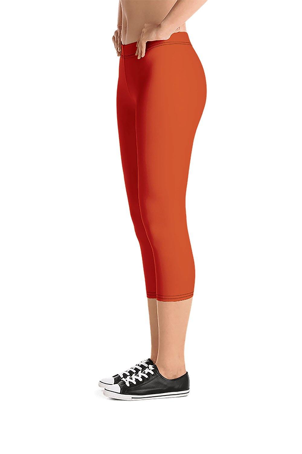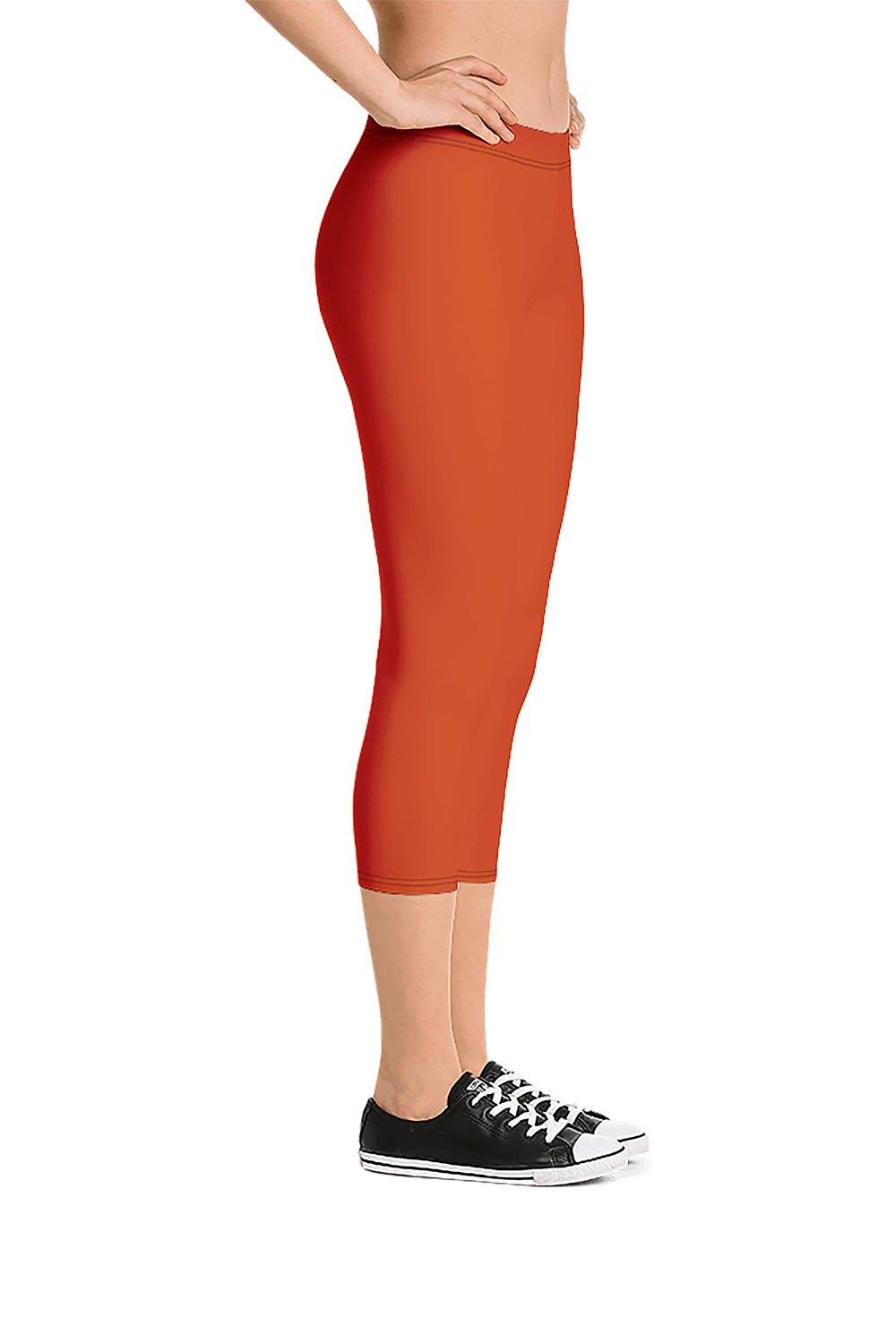 Brick Red Capri Leggings - Brick Red is a warm brownish red. We carefully picked the color tones and levels to come up with the most visually appealing shade. So grab these brick red capri leggings and stand out in the crowd.