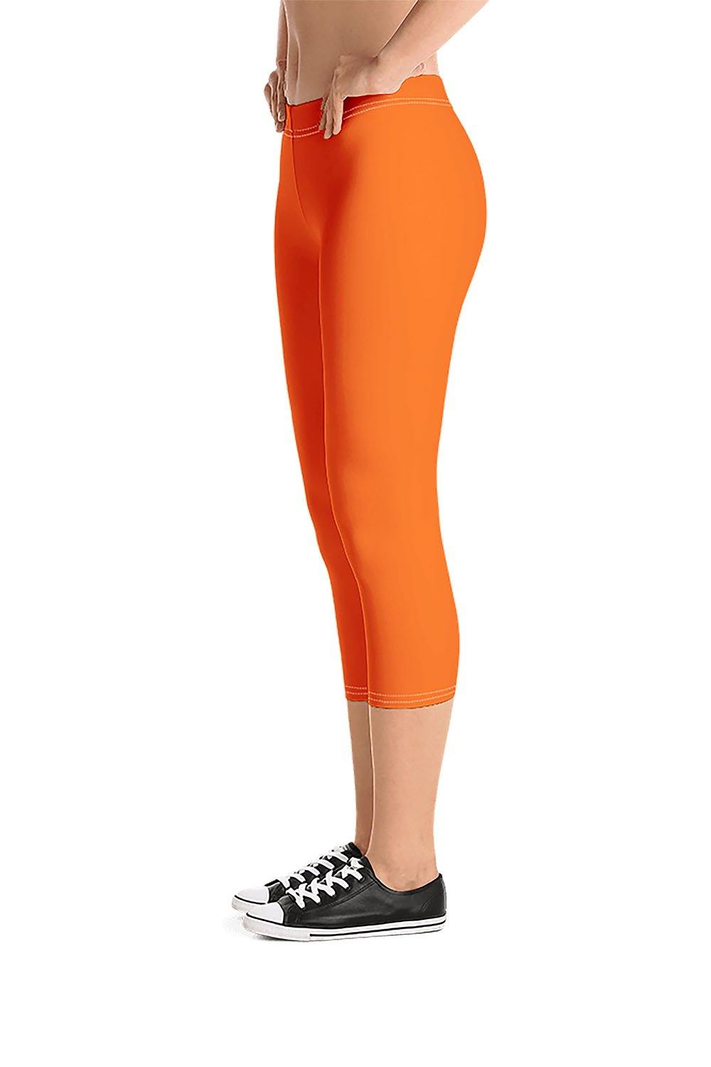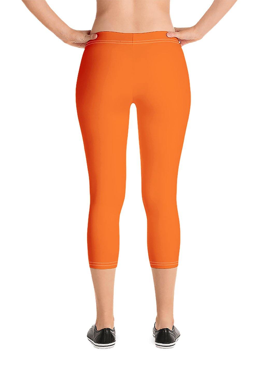 Orange Capri Leggings - Orange is a mix of red and yellow - it has many variations depending on the proportions of its two primary colors. It's a catchy, creative, fresh, and youthful color and has the optimism of yellow and the warmth of red. It evokes energy and activity and encourages socialization.