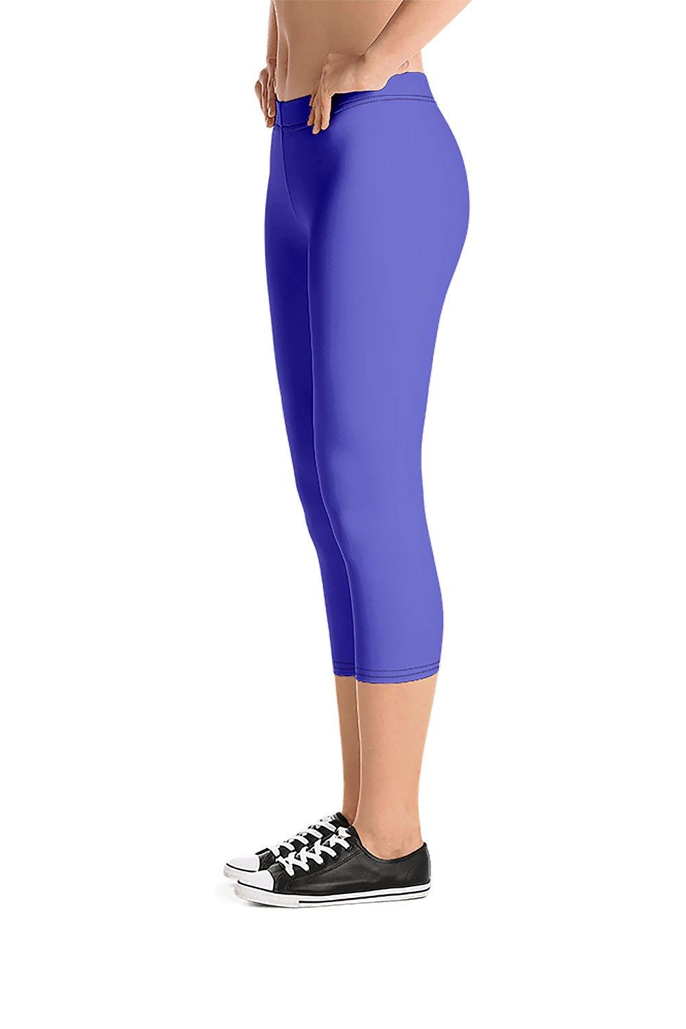 Twilight Blue Capri Leggings - During a specific period of twilight, when the sun is at a significant depth below the horizon and when the residual, indirect sunlight takes on a predominantly blue shade is what's called the blue hour, and that's what this color represents, this spectacular and marvelous act of nature that soothes the soul. Get these twilight blue capri leggings and take the blue hour home with you.