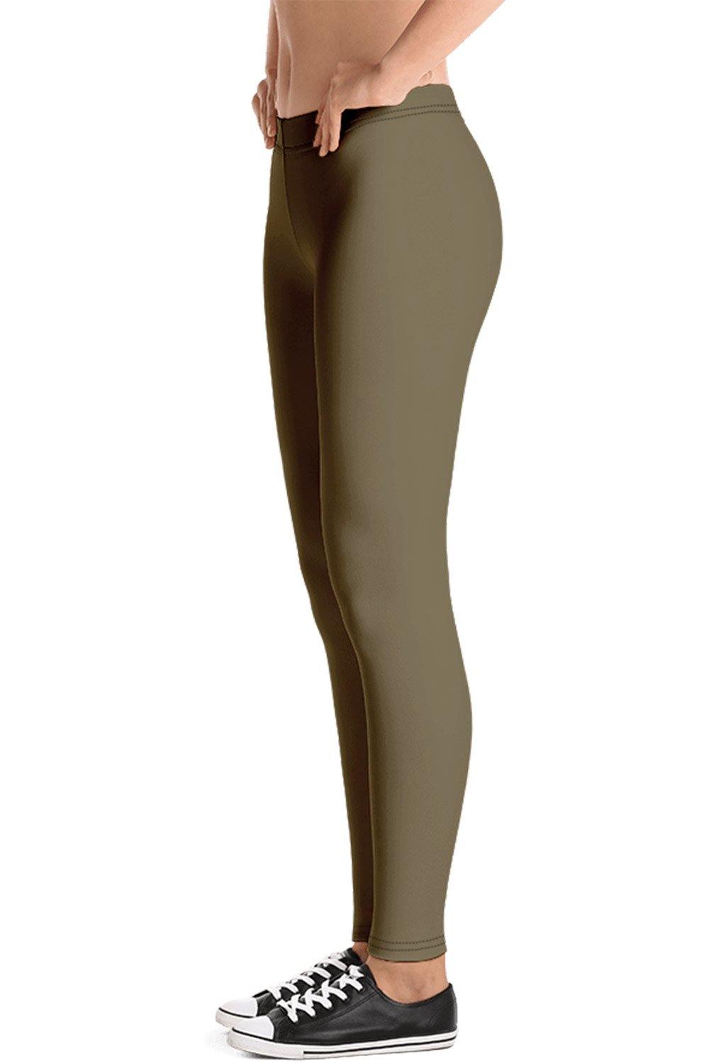 Khaki Leggings - Khaki is a shade of yellow-brown, the US Military was the first to introduce it as a uniform back in the day, then followed the rest of the armies around the globe and was eventually adopted by the mainstream fashion as a standard color for casual pants. It works well with almost any color in the visible spectrum especially black, blue, white, and green.