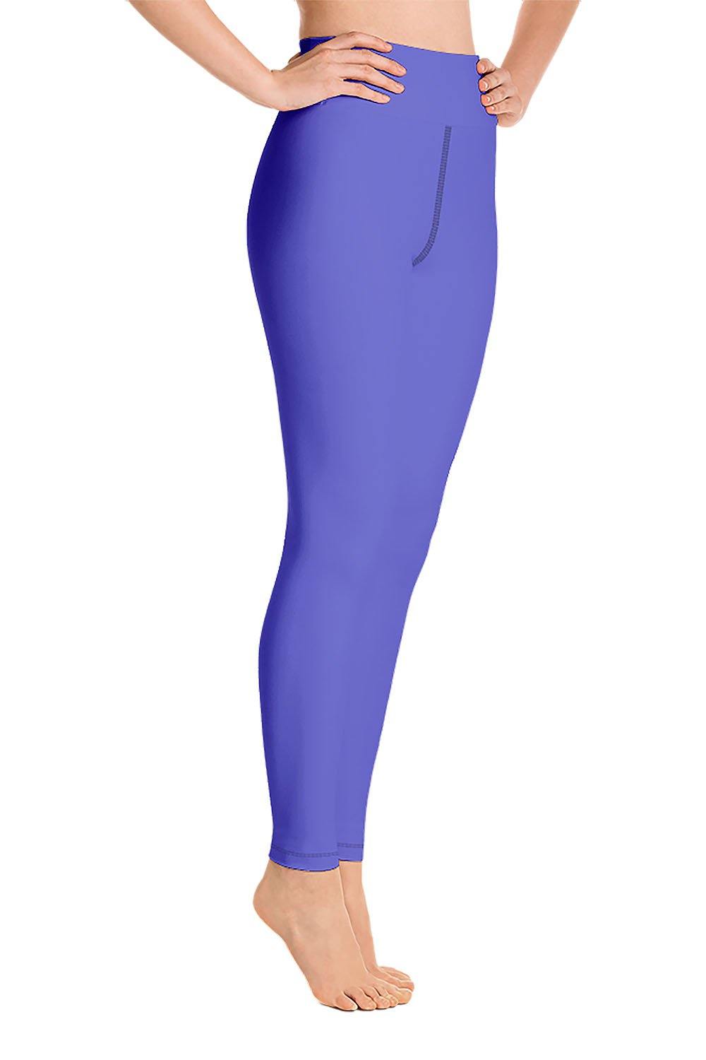 Twilight Blue Yoga Leggings - During a specific period of twilight, when the sun is at a significant depth below the horizon and when the residual, indirect sunlight takes on a predominantly blue shade is what's called the blue hour, and that's what this color represents, this spectacular and marvelous act of nature that soothes the soul. Get these twilight blue yoga leggings and take the blue hour home with you.