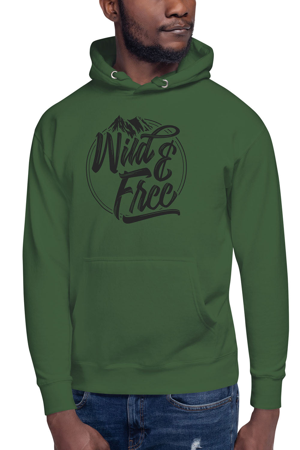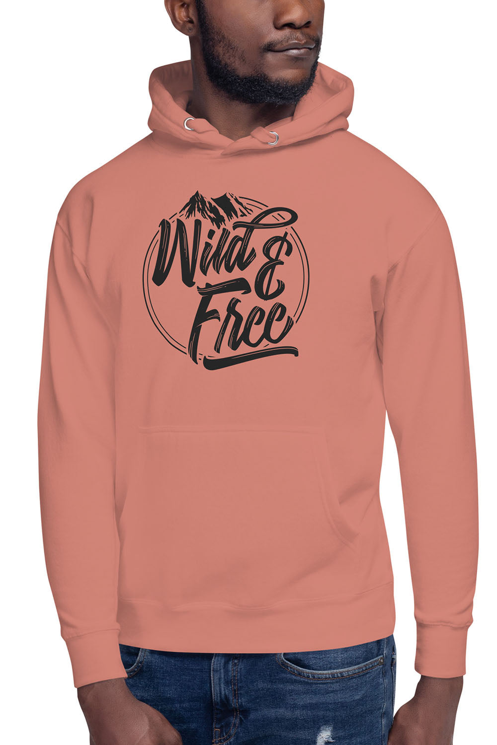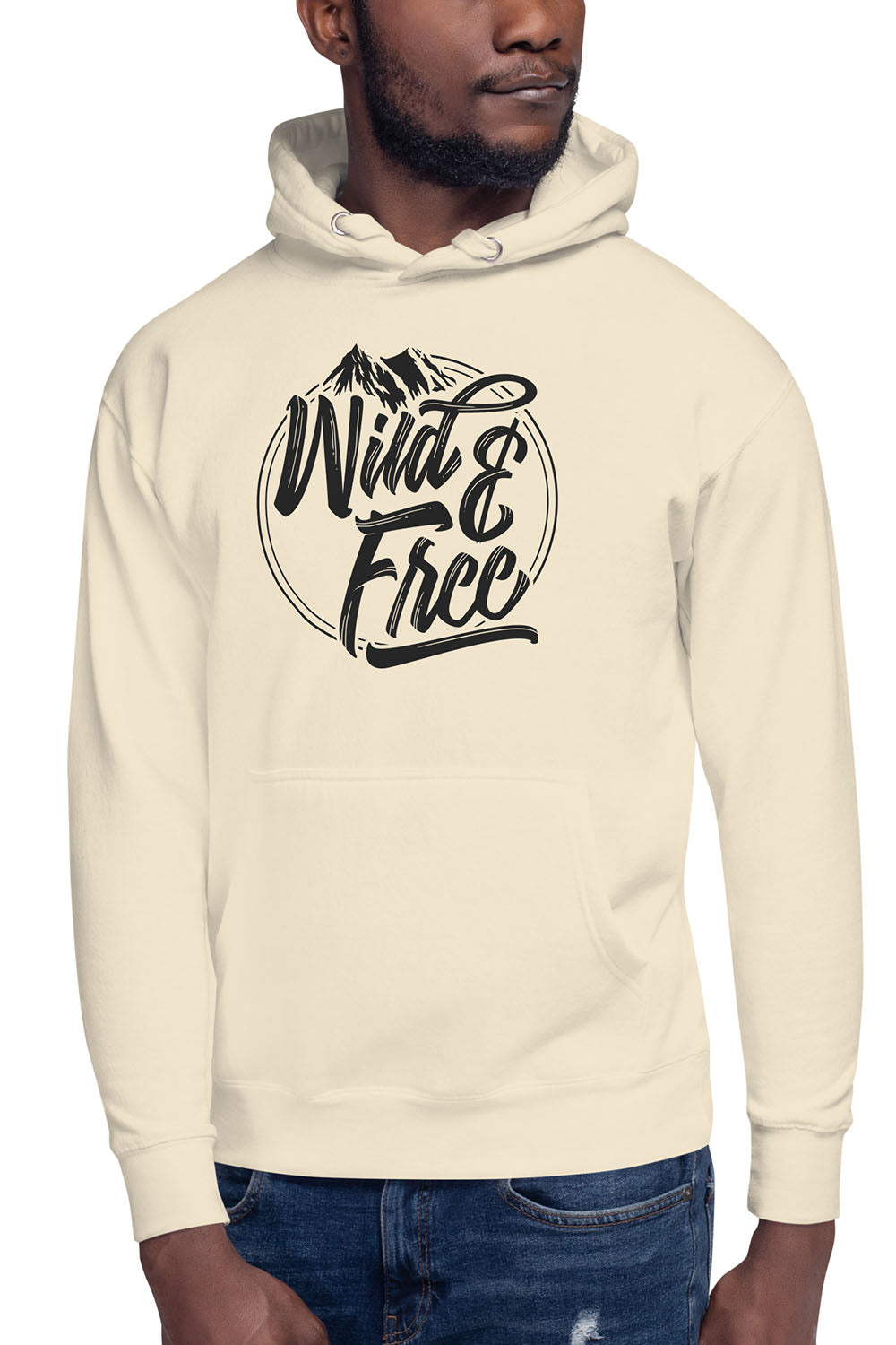 Wild & Free Unisex Premium Hoodie - We created this design for all the wilderness fanatics out there who just can't get enough of mountains and road trips. The entire artwork was designed in the shape of a circle, inside it we designed a mountain and we used a special font to create the words wild & free. If you wanna be carefree then get this wild & free unisex premium hoodie and roam the wilderness.