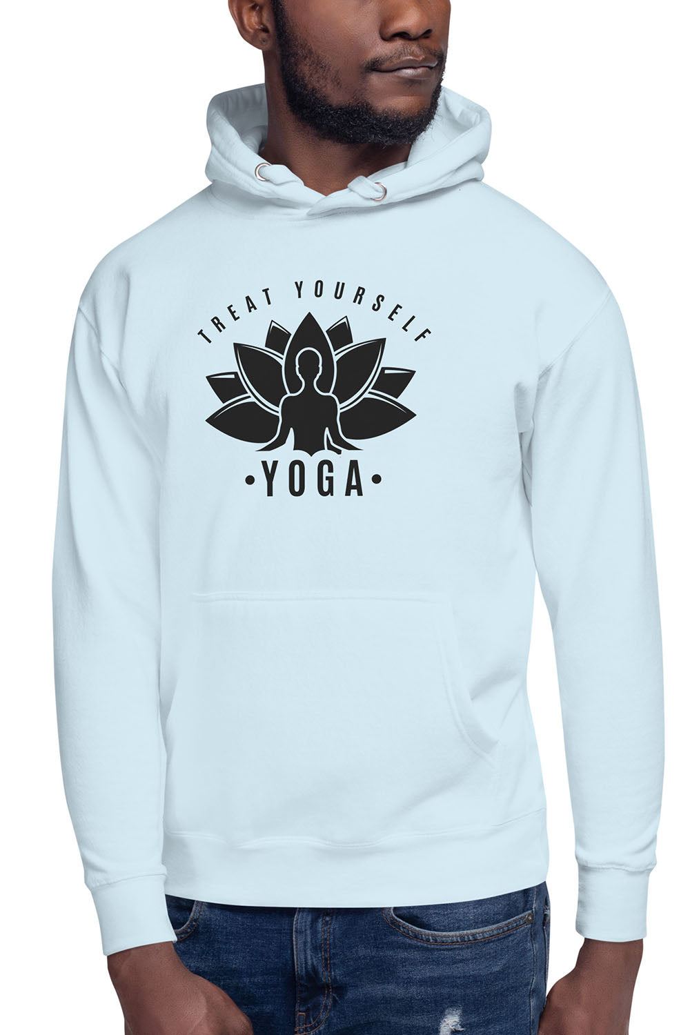 Yoga Unisex Premium Hoodie - We created this artwork for all the yoga lovers out there who love the meditation, tranquility and peace that yoga is associated with. To simulate this artwork we created the lotus flower which represents spiritual enlightenment and in front of it we designed a person doing the famous yoga meditation position. If you love yoga then get this yoga unisex premium hoodie and engulf in tranquility and peace.